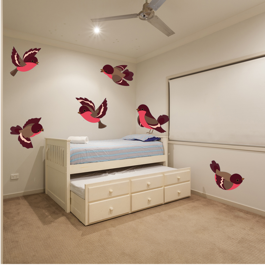 Kit Adesivo Murale bambini 6 uccelli